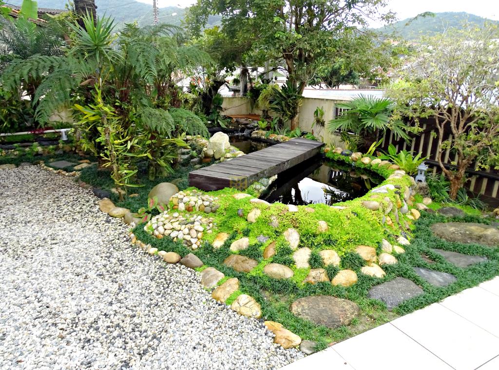 Disfruta de unos días de descanso en esta acogedora casa de temporada, ubicada en una zona tranquila del centro de Porto Belo, con un hermoso entorno verde, jardín y un encantador lago con peces.